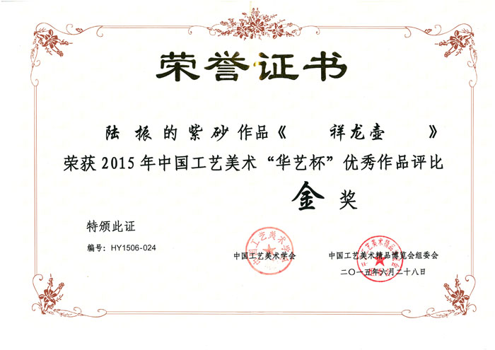 » 祥龙壶金奖证书